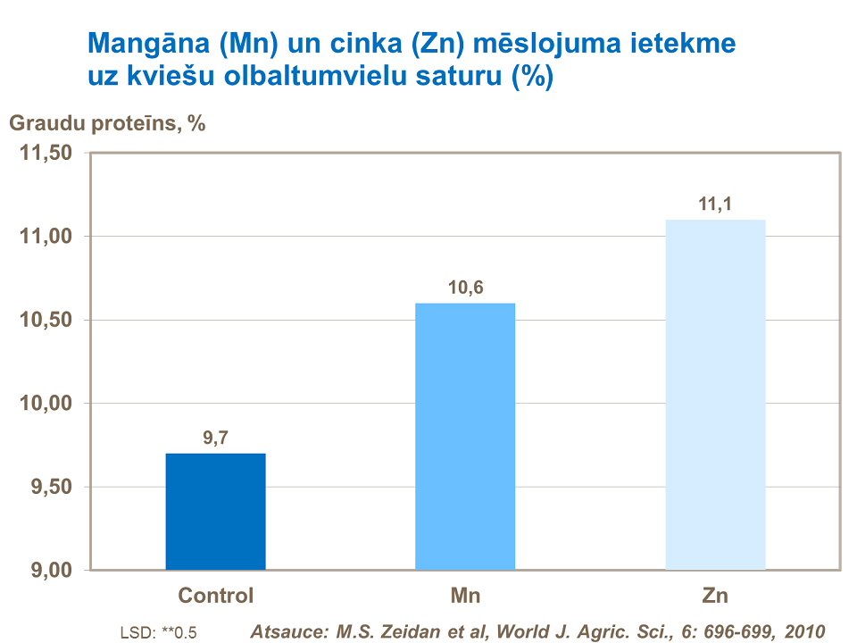 Mangānam un cinkam ir nozīmīga loma auga metabolisma procesos, ieskaitot slāpekļa vielmaiņu. Uzlabots slāpekļa vielmaiņas process, pieprasa palielināt slāpekļa daudzumu, kas tiek iesaistīts olbaltumvielu veidošanā.