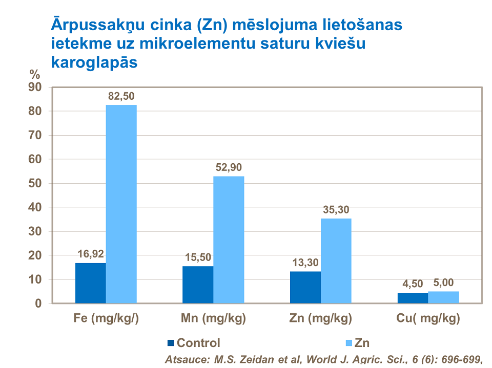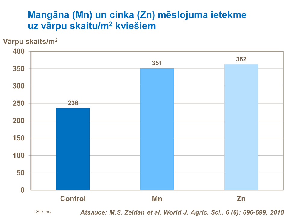 Mangāns un cinks ir divi svarīgi mikroelementi, kas ietekmē ražu veidojošos komponentus, piemēram, palielina vārpu skaitu un graudu izmēru, kā rezultātā palielinās novācamā graudu raža.