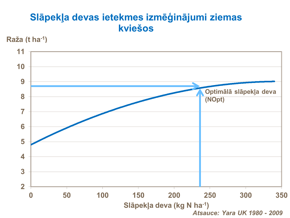 Tomēr jāatceras, ka pārmērīgi liela tā izmantošana veicina pārmērīgi strauju lapu augšanu un auga veldrēšanos. Optimālais slāpekļa līmenis (N opt) ir līmenis, pie kāda tiek iegūta maksimāla ekonomiskā atdeve.